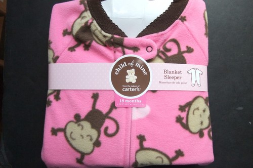 Child of mine girls sleeper blanket sleepwear pink monkeys NWT 18mo