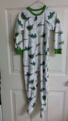 You are bidding on a gently used pair of Carter's Feetie Pajamas with a dinosaur theme.