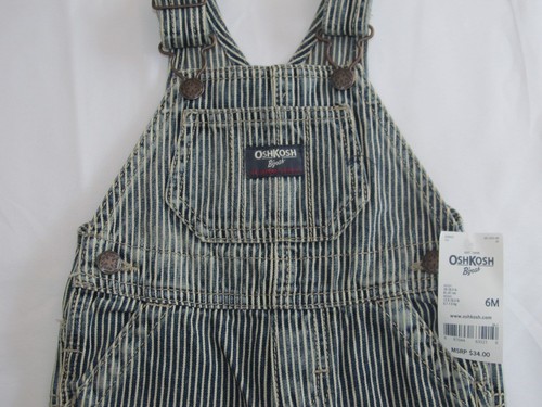 NWT BOYS OSHKOSH OVERALLS STRIPED DENIM OVERALLS RAILROAD STRIPE SIZE 6 MONTHS